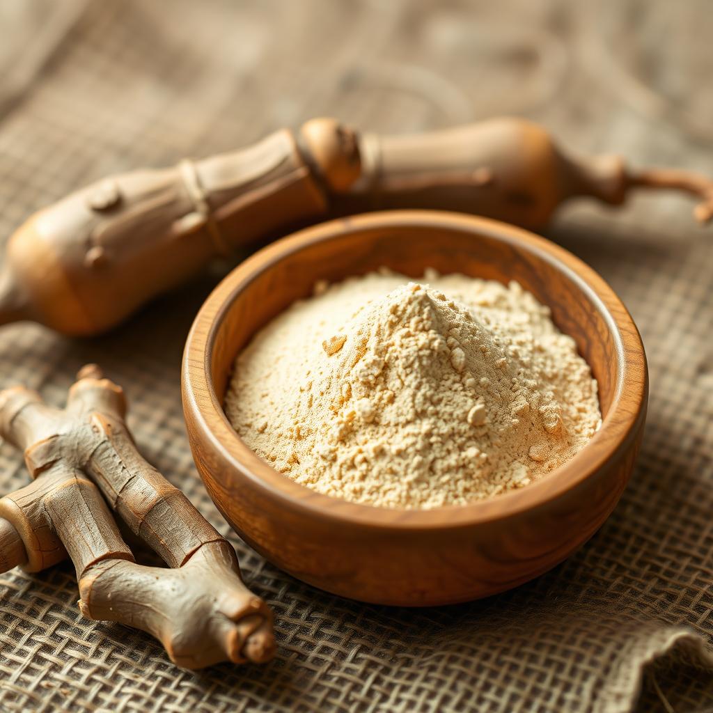 Conocida como el “ginseng indio”, esta hierba ayurvédica es famosa por su capacidad para reducir el cortisol (hormona del estrés) y equilibrar los sistemas hormonales masculinos. Proporciona una energía estable y duradera sin los altibajos de la cafeína.