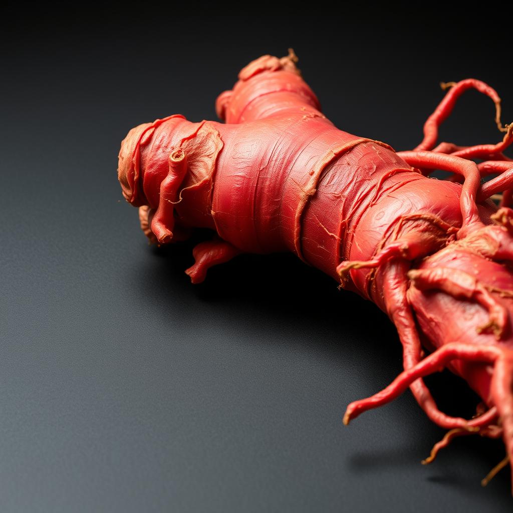 Conocido como el “rey de las hierbas adaptógenas”, el ginseng rojo ha sido utilizado durante siglos en la medicina tradicional asiática para fortalecer la resistencia física y mental. Sus ginsenósidos actúan directamente sobre el sistema circulatorio, mejorando el flujo sanguíneo y optimizando la energía celular.