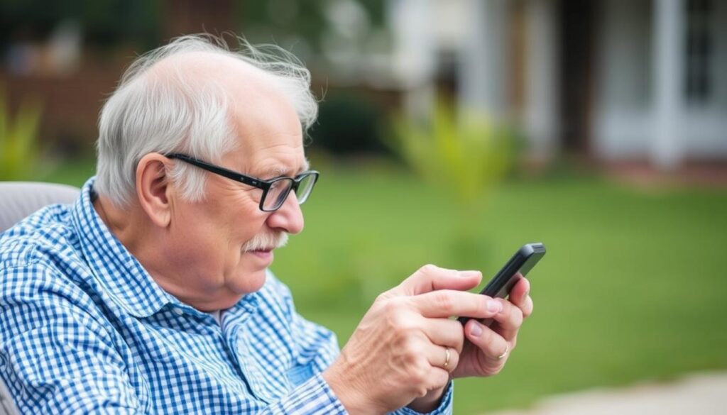Imagen de una persona jubilada accediendo a un crédito rápido a través de un dispositivo móvil