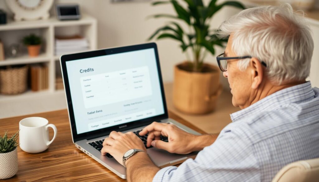 Imagen de una persona jubilada revisando opciones de crédito en una computadora